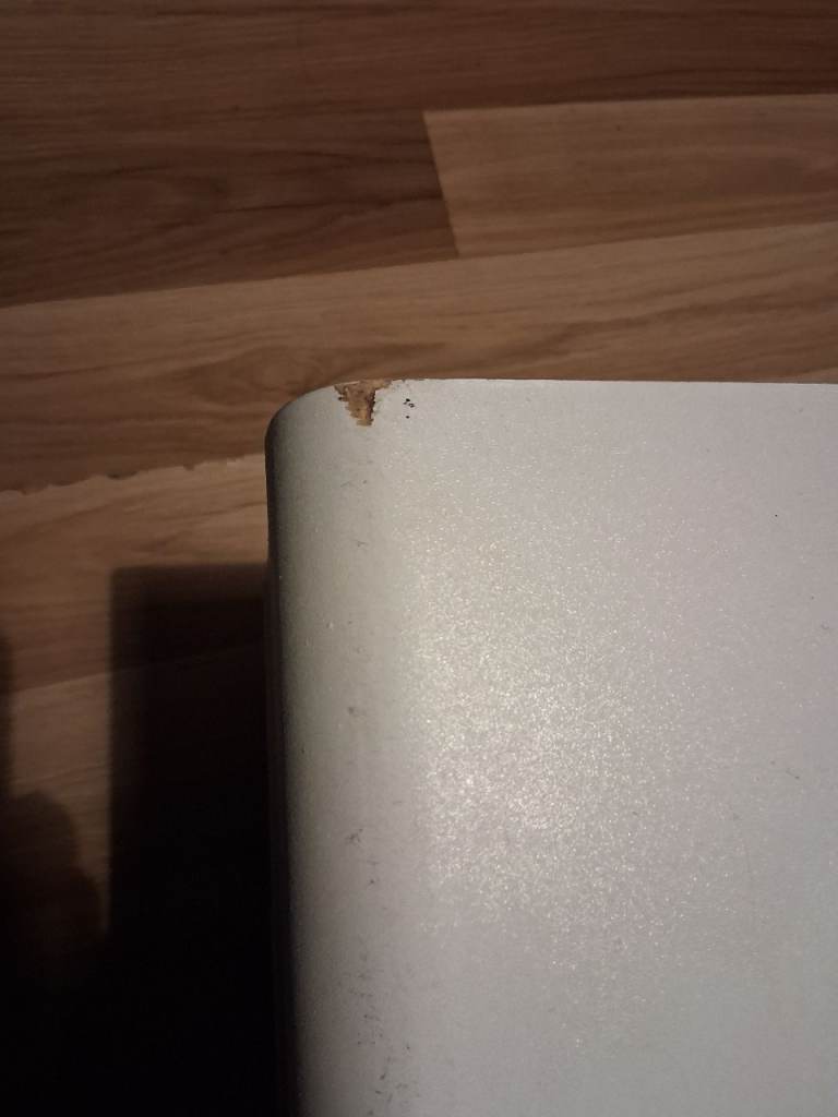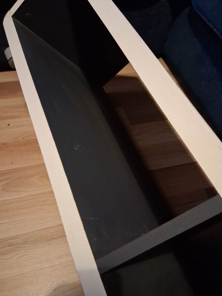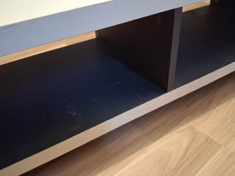 Finished in white, it has some minor scuffs on the shelves.