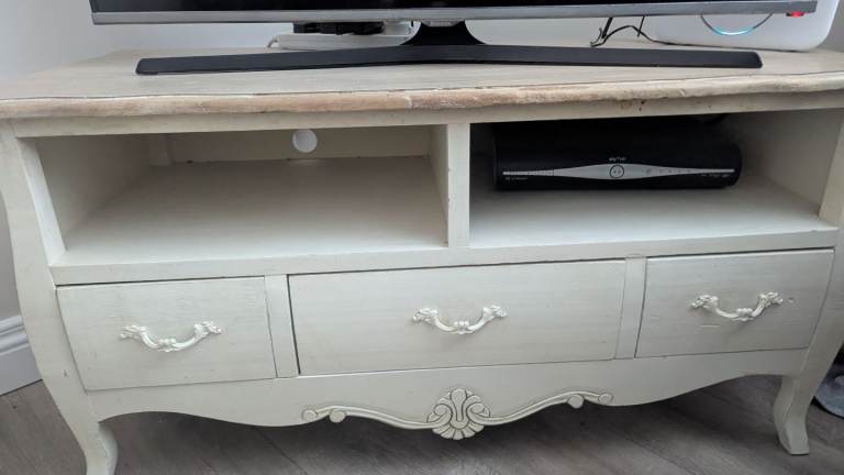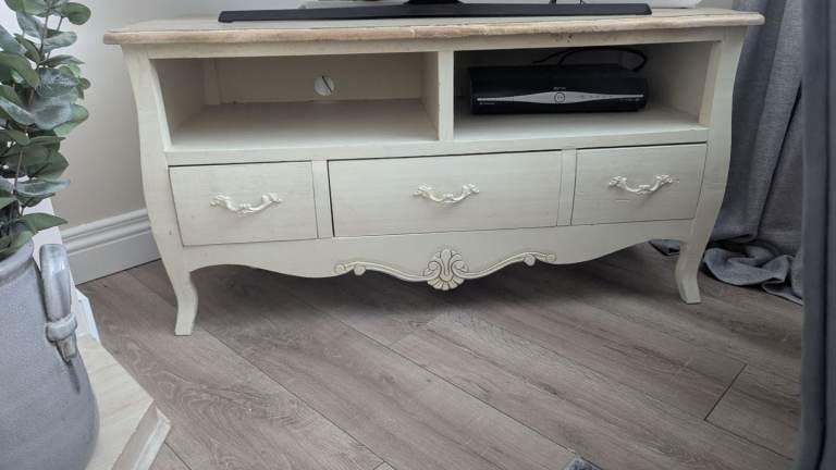 Three drawer french style TV unit excellent condition solid wood
