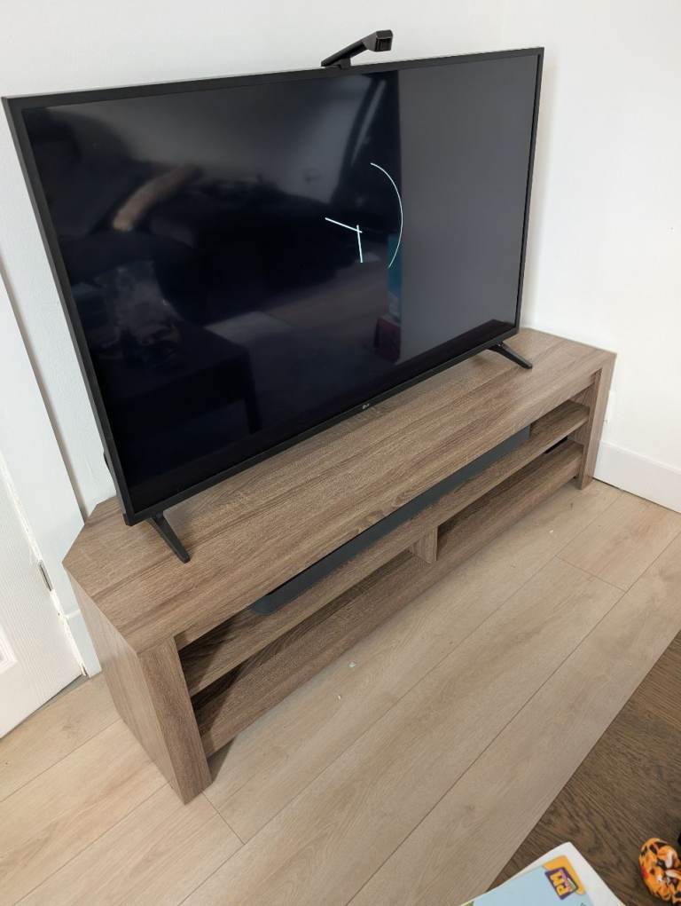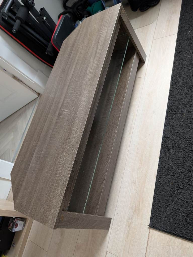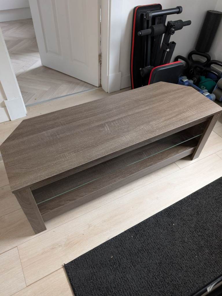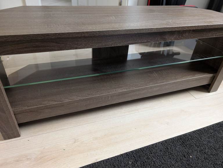 This stand is ideal for holding a television and other entertainment equipment. Has a slight mark barely noticeable if you can spot it on the pictures won't see it in normal conditions unless up close
