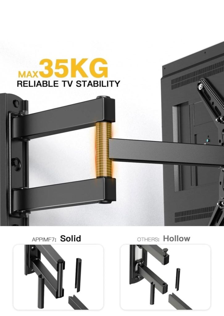 Safe to Use- High quality steel construction ensures safety. TV mount is made from cold-rolled steel and can support TVs weighing up to 35kg