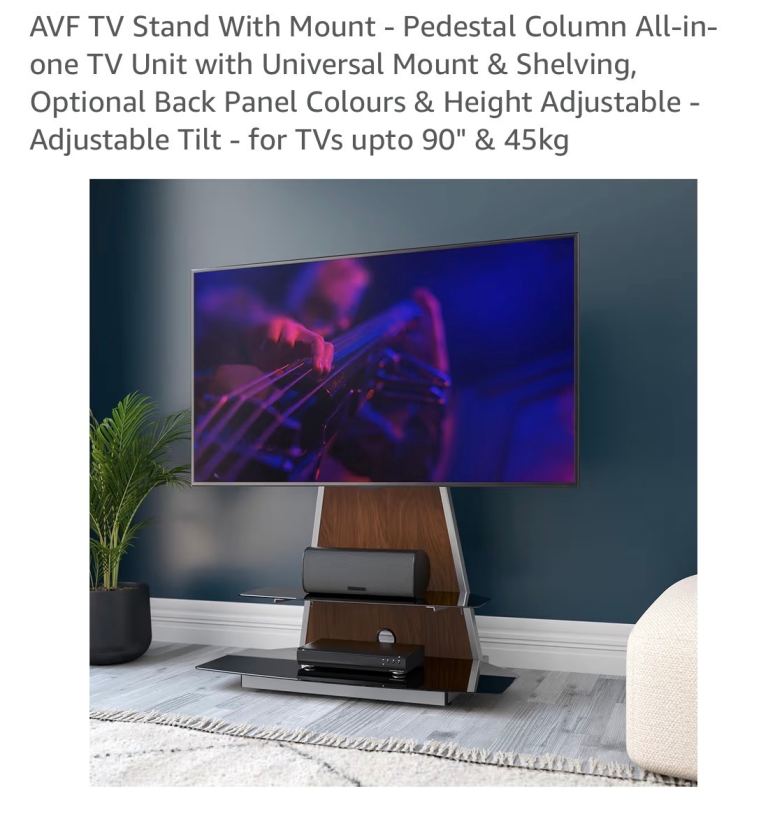 AVF TV Stand With Mount - Pedestal Column All-in-one TV Unit with Universal Mount & Shelving, Optional Back Panel Colours & Height Adjustable - Adjustable Tilt and height - for TVs upto 90" & 45kg