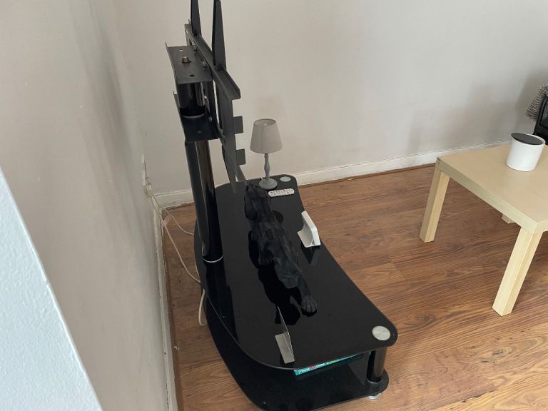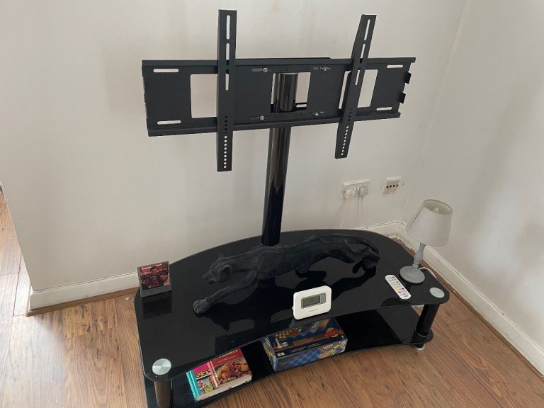 Black Glass TV Stand with a TV mount for sale.