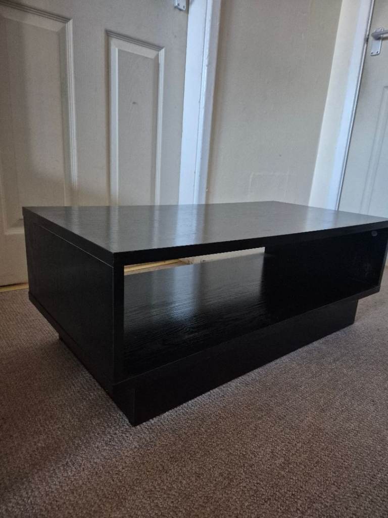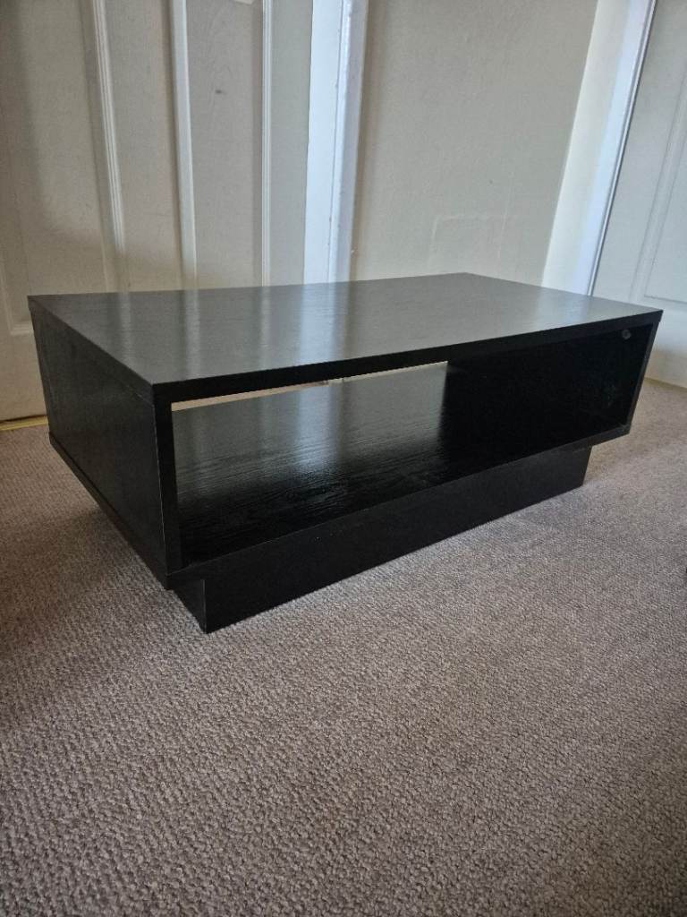 Solid black shelf with unique upside-down ceiling mount. Great for creative storage or display. Good condition.