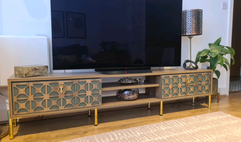 Lovely looking TV unit bought a few years ago from Dwell for a lot of money. Very stylish and well made. 2 large drawers.