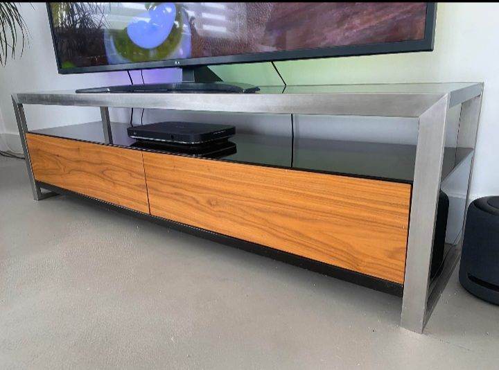 Posting for 3+ monthsDwell walnut and stainless steel TV unit. 2 drawers. Coll’ Pearcroft Rd, Ipswich