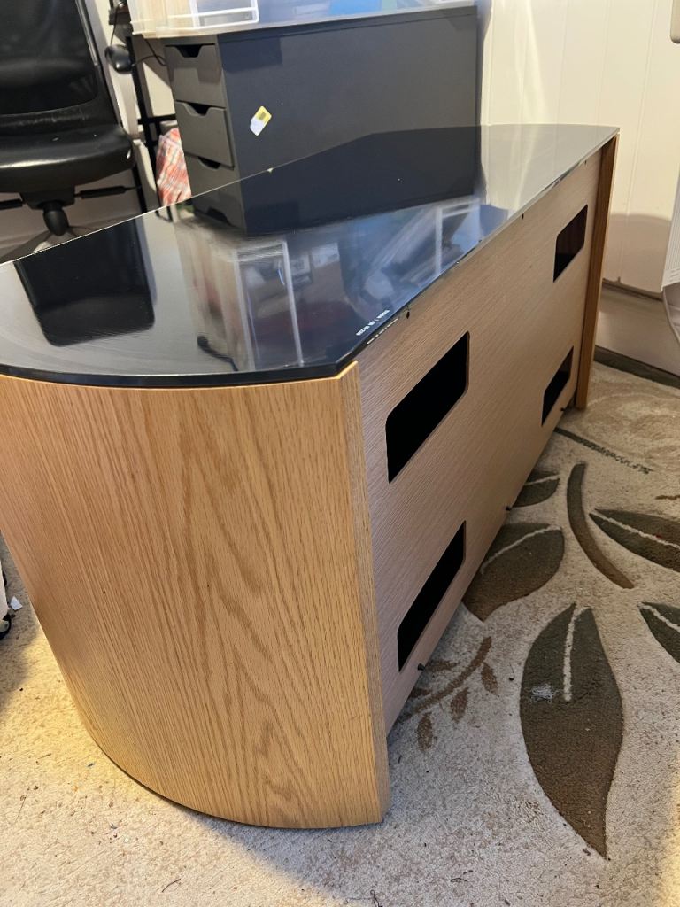 Excellent conditioned TV cabinet for sale, sides are pure wood with dark glass.