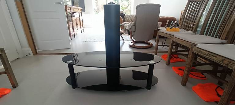 Floor TV Stand in Black Glass
