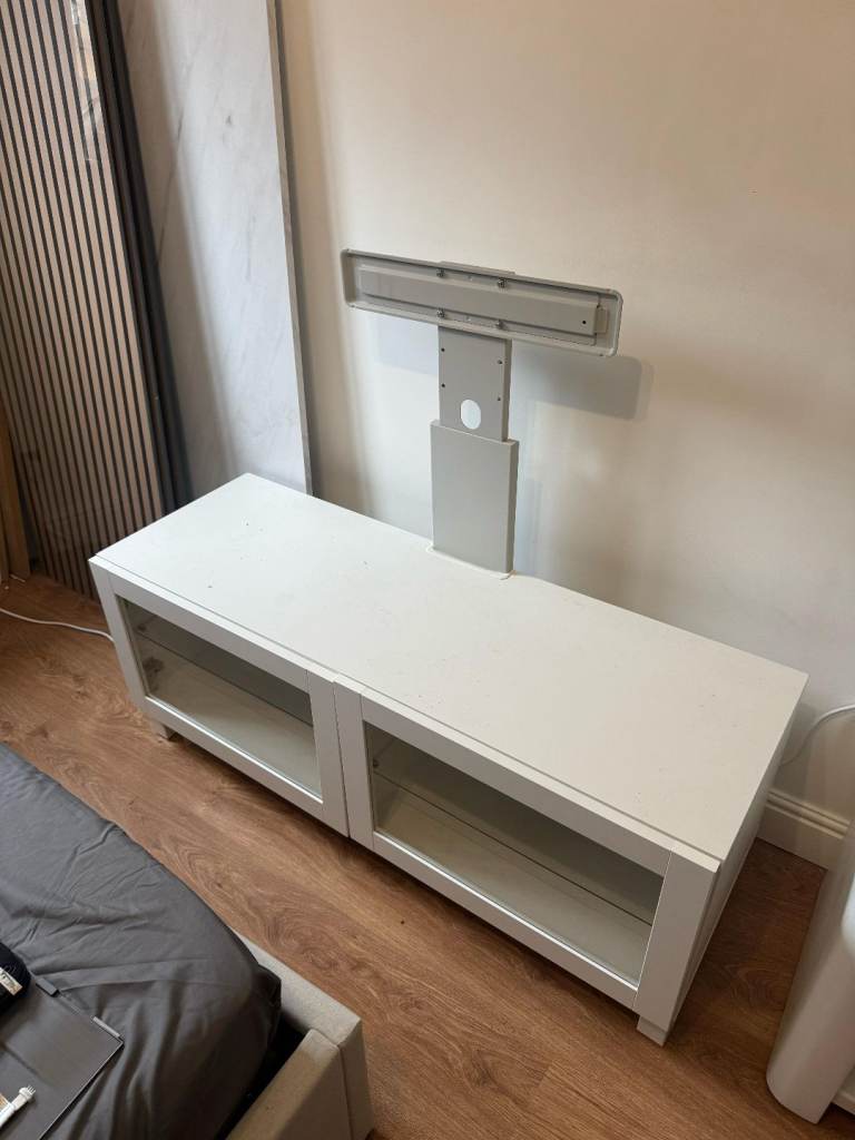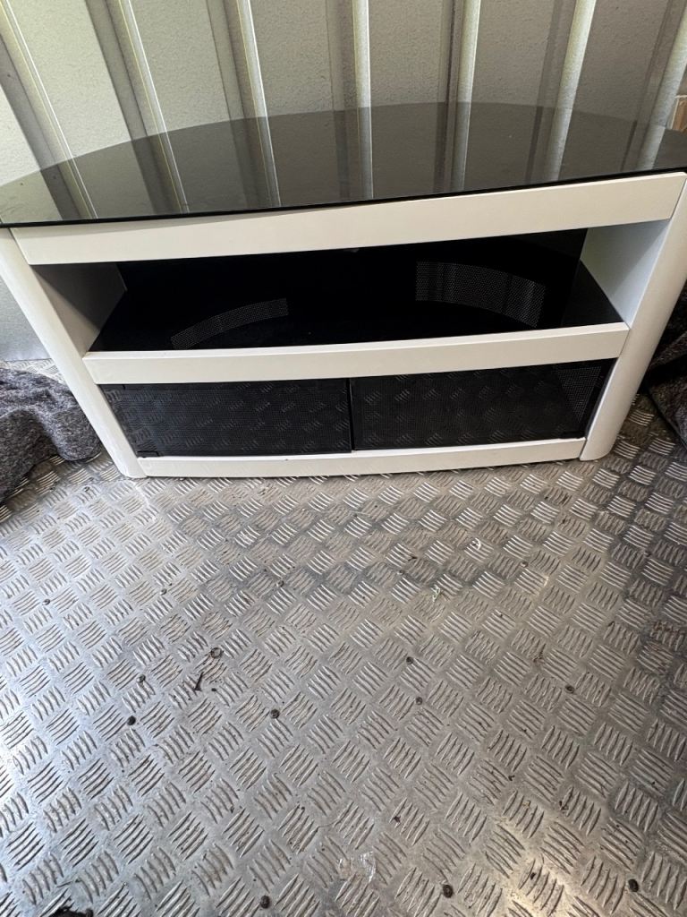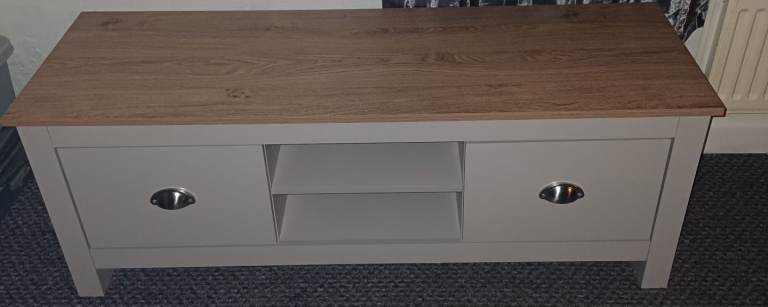 Television unit, small chip top left and hairline crack on front door.