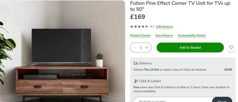 NEW - Fulton Pine Effect Corner TV Unit for TVs up to 50" - £75
