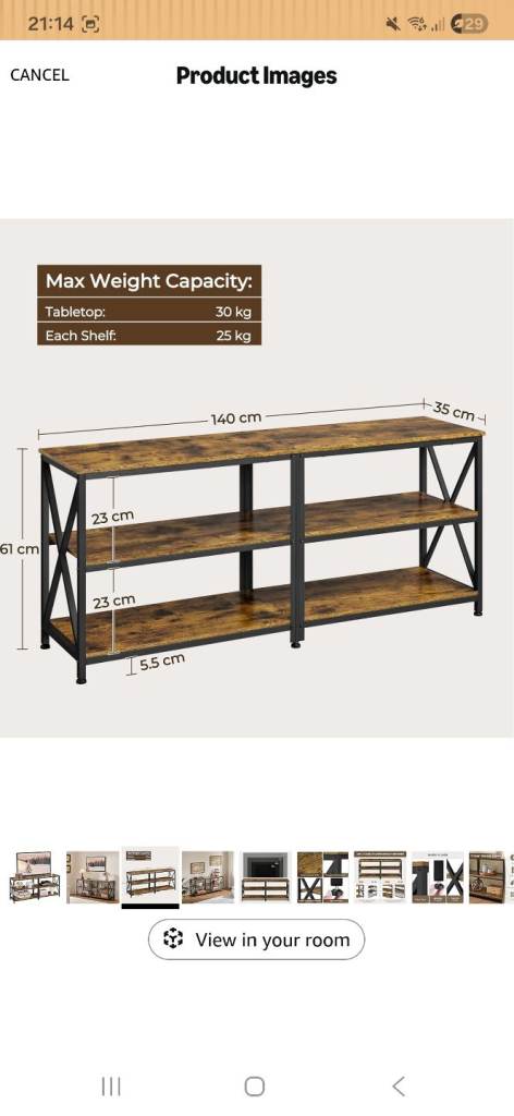 Selling my rustic tv stand as bought a bigger one. The sizes of stand are in the pictures.