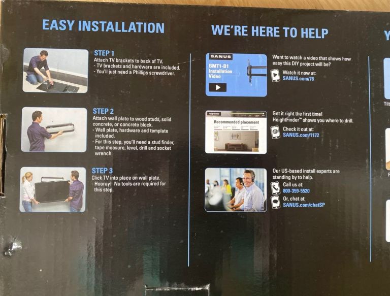 Brand new Sanus TV tilting wall mount for television size 37’’- 55’’, BMT1-B1. Still in unopened original box.