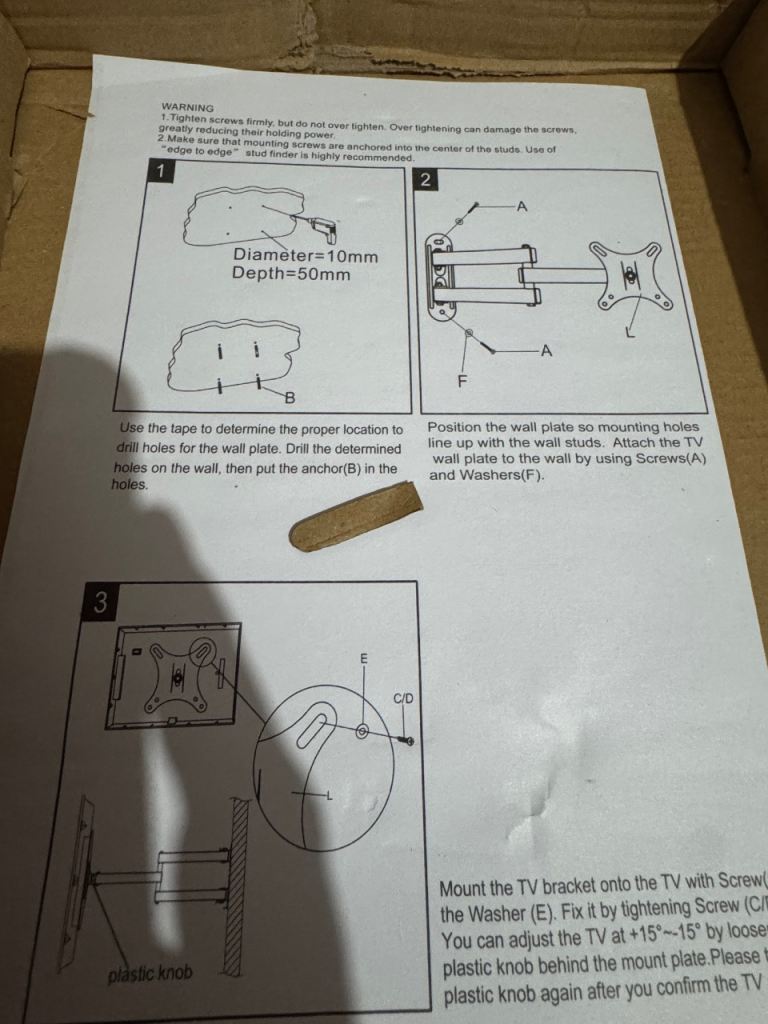 Full motion TV wall mount for 14-55 inch TVs - full swivel, tilt and adjustability 15kg weight capacity Fits flat and curved TVs new no used
