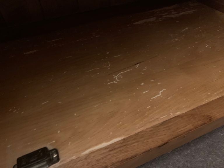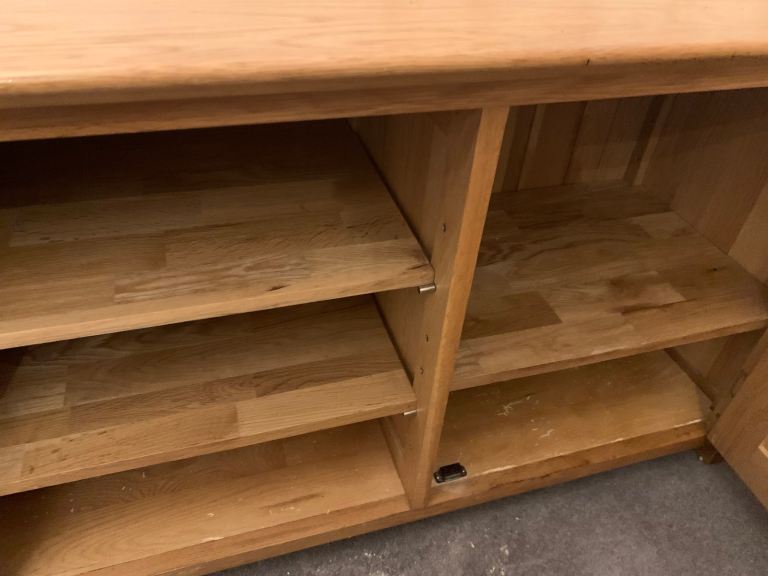 Solid pine TV stand with woodwork markings on bottom of stand (hence reduced price)