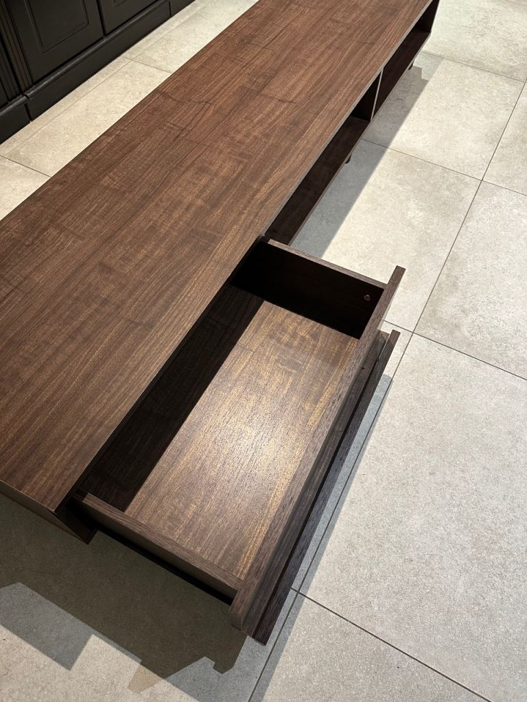 DIMENSIONS: W 180 x D 42.1 x H 30 cm | Interior: W 63.8 x D 35.5 x 18.1 cm | Drawer: W 49.9 x D 33.6 x H 11.8 cm | Hole diameter: 5 cm | Recommended TV size: 43V; 50V; 55V; 65V and 75V