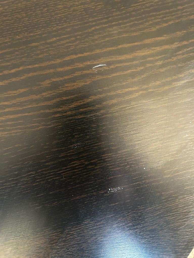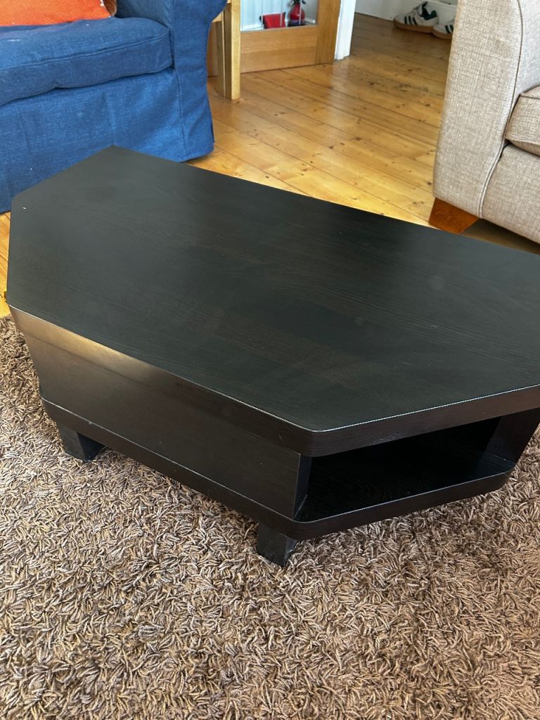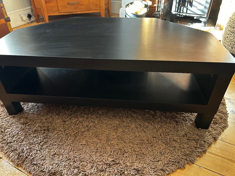 Dark brown/black wood effect TV stand. Some signs of wear and tear. See pics