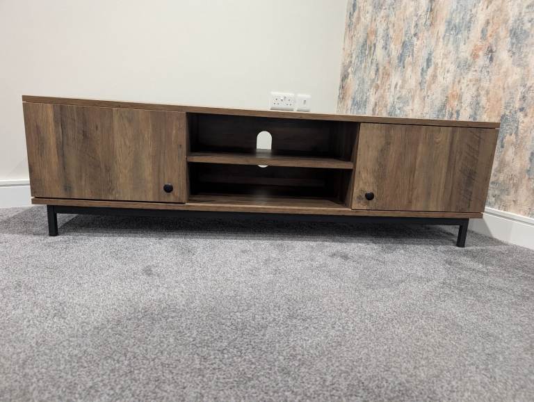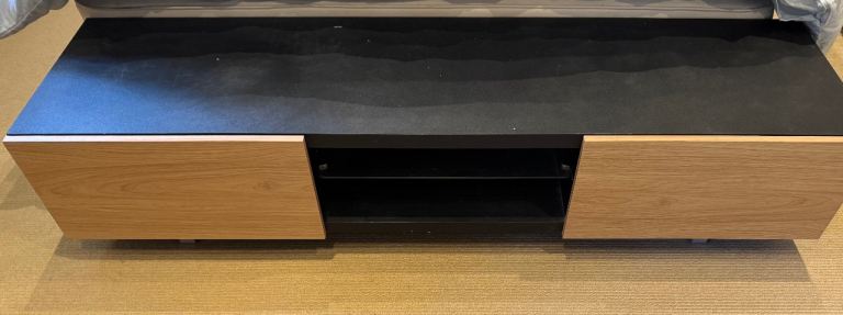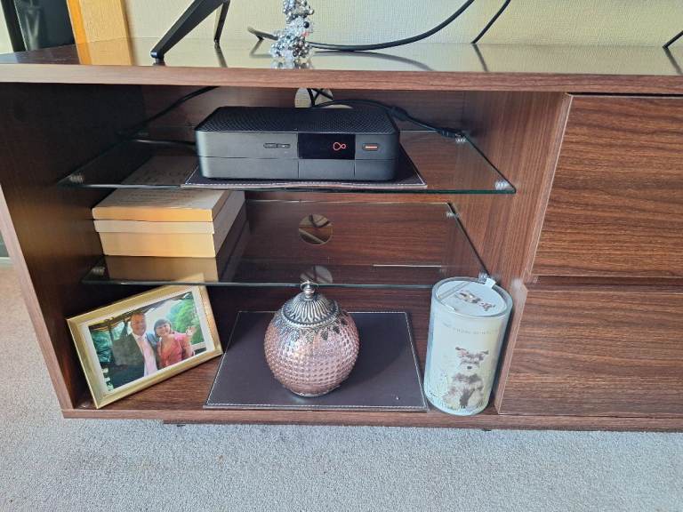 Black gloss TV Stand from Fenwicks with smoked glass front and chrome legs - will fit 55” to 65” TV - excellent condition.
