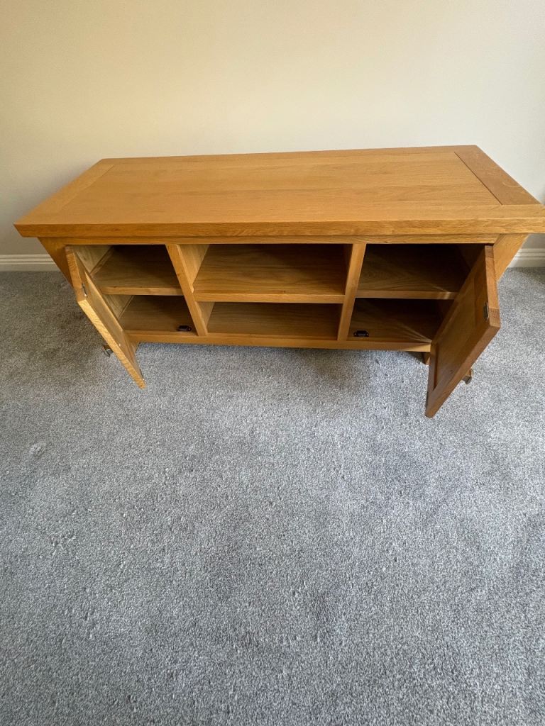 TV stand. Solid Oak good quality. Good condition. W 120cms H 50cms D 48 cms. (TV not included) Collection only