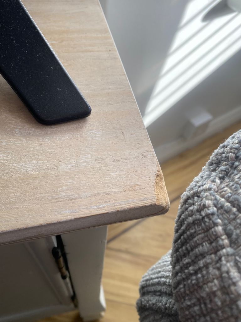 Shabby chic style - a chip in the corner and one of the doors it broke on hinge see photos.