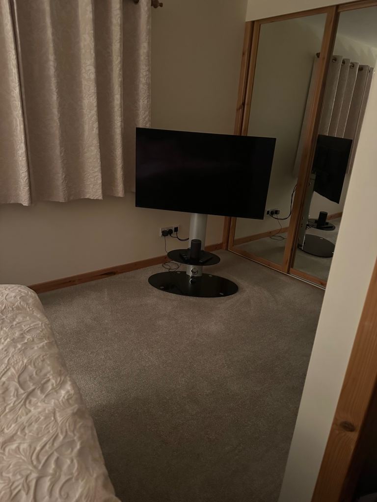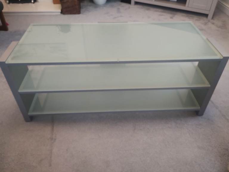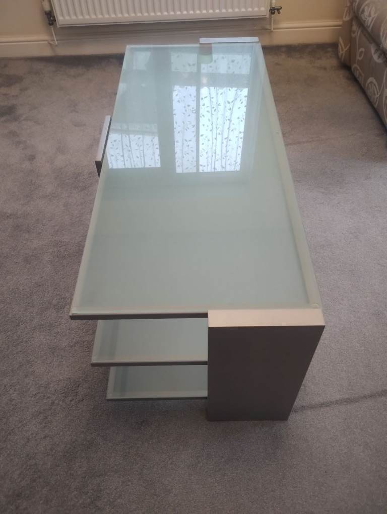 Very solid John Lewis TV unit with glass shelves. Dimensions 114 x 47 45cm.