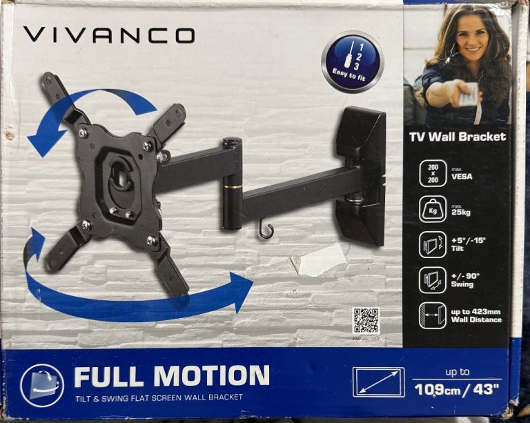 Vivanco Full Motion TV wall bracket for small & medium sized TVs up to 109 cm / 43 inches