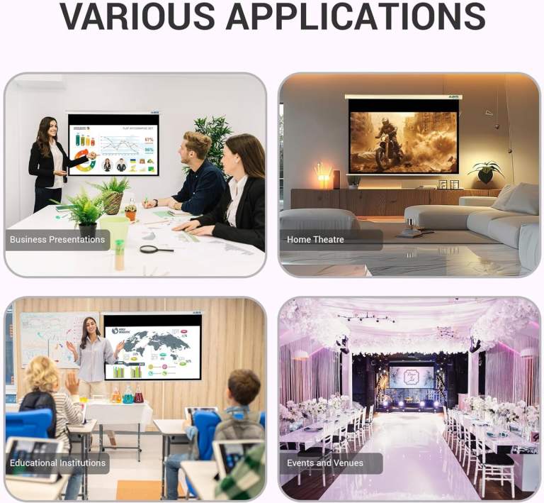 High-Grade Matte White Screen: Delivers clear, bright, and sharp images with excellent light reflection.