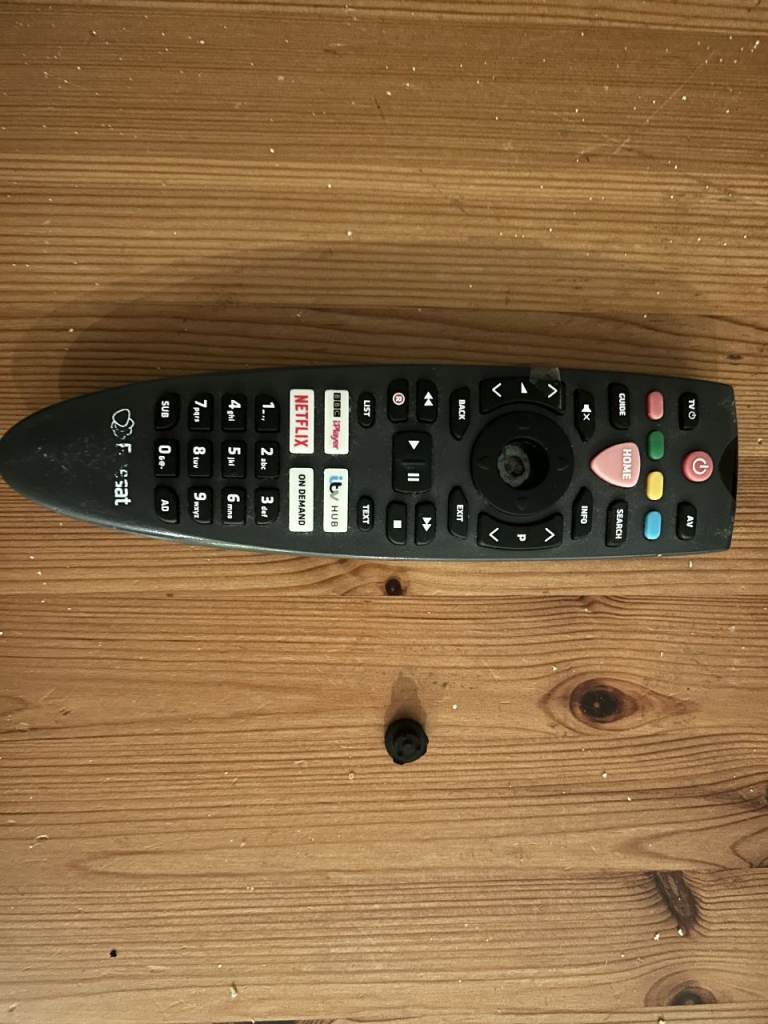 The remote does have one loose button, but it still works fine. If you’d prefer a fresh one, you can pick up a compatible replacement on Amazon.