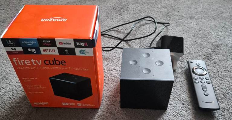 It includes the Fire TV Stick 4K (2nd generation), Alexa Voice Remote, 2 AAA batteries, power adaptor, power cable and HDMI extender cable. Needs high-speed internet with Wi-Fi and a TV with an HDMI port. Box included