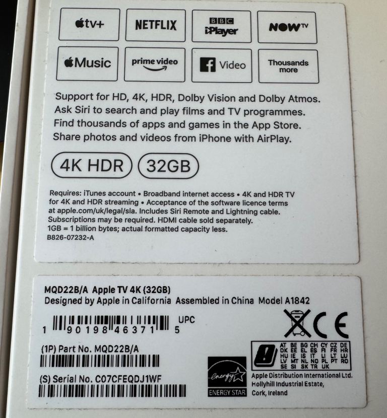 Apple TV 4k (stream Netflix, iPlayer etc)