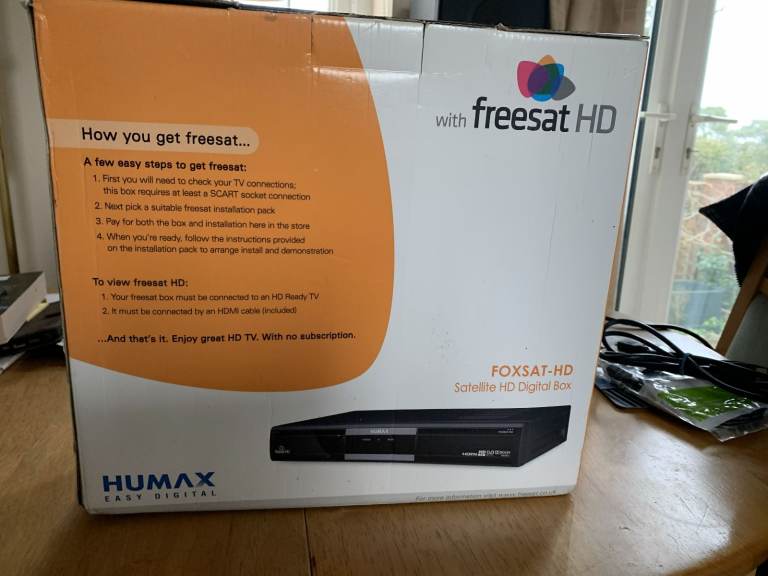 For sale:- A HUMAX - FREESAT HD Digital box receiver type : FOXSAT - HD . All complete with instructions, connections & remote Note. Needs to be connected to a Satellite dish to receive program signals.