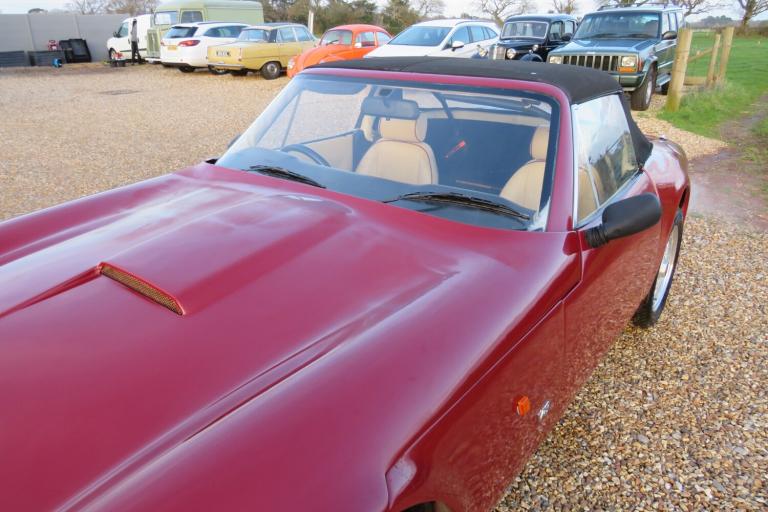 Finished in deep claret complimented with magnolia hide interior. upgraded fitted with the Later 4.5 V8 engine uprated suspension new chassis recently completed a 1,800 mile tour of Spain advisory free MOT .more like the the M-Series of the early Seventies. Initially powered by Ford's 2.8 Cologne V6, from 1991 it was also available with the 3.9 V8 Rover engine, these V8S models being easily distinguished by the central hump in the bonnet to allow clearance for the larger engine. This engine was subsequently ditched in favour of TVR's new AJP8 engine which was designed in-house and was fitted to the TVR Cerbera of the 1990s. Basically a race engine, this had a formidable 360bhp in the 4.2 version and a bonkers 420bhp in the 4.5 version, sufficient to hurl the Cerbera to 60mph in 4.1 seconds on its way to a top speed of 185mph -- if you were brave enough First registered in August 1998, this TVR 280S now professionally fitted with a later 4.5 V8. there are various invoices from 2014 onwards for V8 service items so it must have been at least a dozen years ago. having had a brand new chassis and new coil-over suspension with Spax adjustable shocks etc. fitted electronic ignition, gave it a thorough service and also fitted new headlamps and a luggage rack to the boot. a new clutch master cylinder was fitted , along with fresh oil and filter and a new battery in November 2023 plus a new set of Falken tyres in August 2021 at 51,800 miles. It also retains the original handbook and service book with 8 stamps, the last in March 1992 at 25,764 miles. It has an MOT until August 2026 with no advisories recorded plus three old MOTs. As you can see in the photos, this TVR looks very presentable , not to mention exciting to engaging to drive , with healthy 45psi oil pressure and bags of grunt from that big V8.