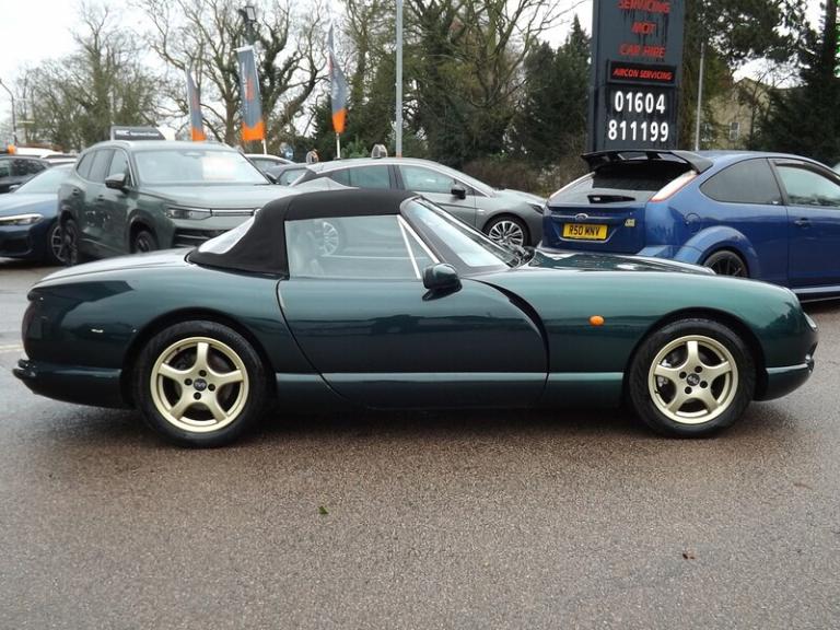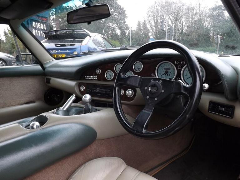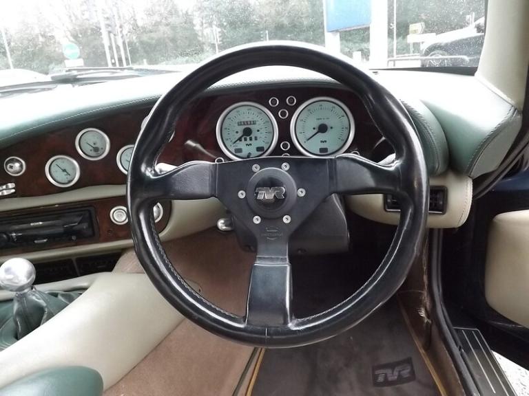 .Here we have a very lovely TVR Chimaera 4.0 that has just arrived in stock. Finished in gleaming Birkdale Green with Parchment Leather and Antelope carpets, this car has fantastic TVR history right up to only a couple of years ago. The previous owner has done all the right things, the radiator has been replaced with the heavy duty Aluminum upgrade, a Kenlow fan has been fitted, Silicone hoses, the outriggers have been replaced along with the Discs & brakes and the Clutch was replaced less than a 1,000 miles ago in April 2024. The documented service history is as follows; 14m pdi 883m @ 11/97 7631m @ 7/98 11818m @ 10/99 17671m @ 7/00 24173m @ 4/01 29972m @ 9/01 32969m @ 10/02 37805m @ 10/05 41385m @ 12/07 46386m @ 7/08 50734m @ 11/09 52809m @ 10/10 54707m @ 5/13 outriggers, brakes etc 62450m @ 10/21 65513m @ 10/23 inc discs, calipers and hoses. Alloy Radiator, p/steering hoses etc 65621m @ 4/24 inc clutch If you want a sorted TVR that you can drive, then this is the one! Better pictures to follow. We will fully RAC check, and MOT this car prior to delivery to its next discerning owner to ensure you the very best possible start. We will also post some better photos as soon as the car has been prepared & valeted, but please feel free to get in touch to arrange your viewing and test drive in the meantime. You can contact us via this website, or email us, or instant chat us anytime. You can also reserve this vehicle right now for just £99. You can fill out the finance application online anytime and get an immediate answer day or night. Part exchange's are always welcome and we guarantee to pay more the WBAC. UK wide, home delivery is always available, or you can ""click & collect"" if you prefer. Please do ring ahead if you are travelling to see this vehicle and we will take it off sale whilst you travel so you don't have a wasted journey. We have been selling quality New & Used vehicles for over 22 years with more than 13,0000 satisfied customers across the length and breadth of the UK. Please feel free to read our reviews and see what our lovely customers really think of us. If this is the car for you then we look forward to hearing from you and helping you achieve your Motoring goal. Should it not be quite what you are looking for then please get in touch and put us to the task of sourcing you your ideal vehicle, we have many contacts across the trade and can usually find a particular vehicle you require in a reasonable amount of time.