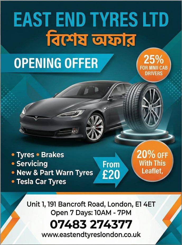 Grand Opening Offer! 25% OFF for Mini Cab Drivers – East End Tyres London