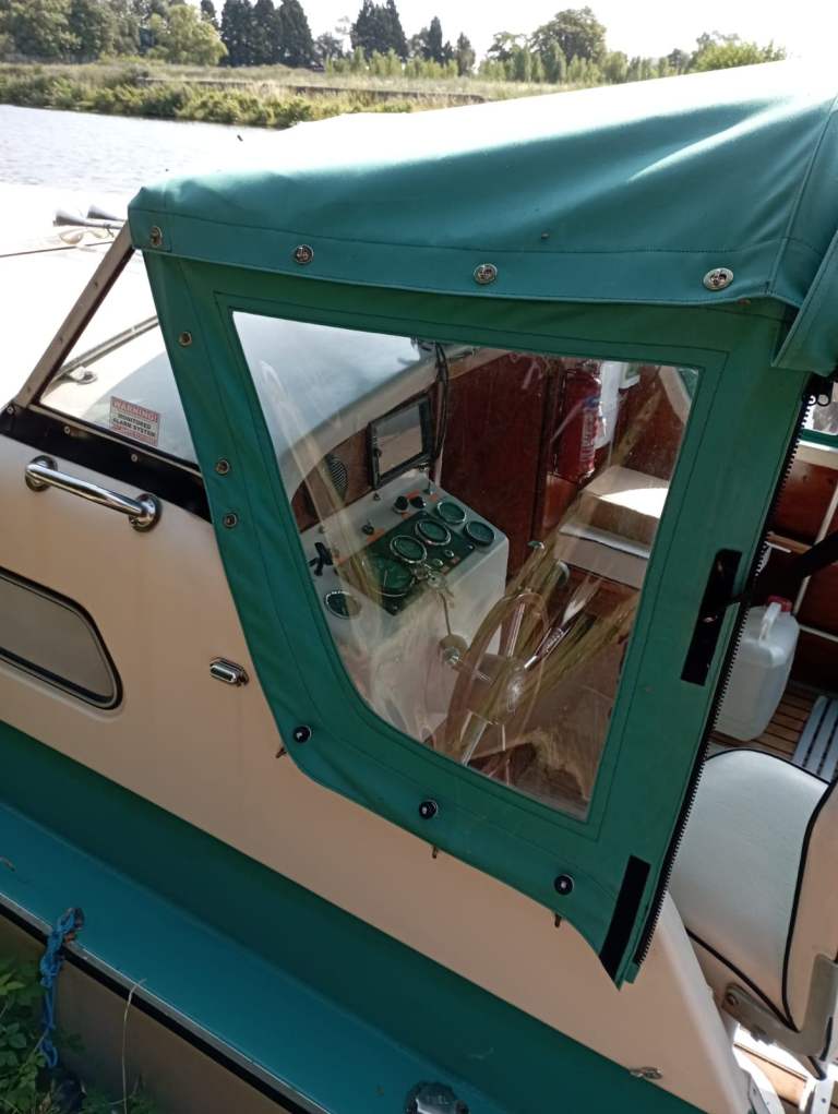 A new colour co-ordinated canvas canopy. The galley has been brought up to date with hot water and a landline immersion heater. New tiling and taps with a 4 burner hob, grill and oven.