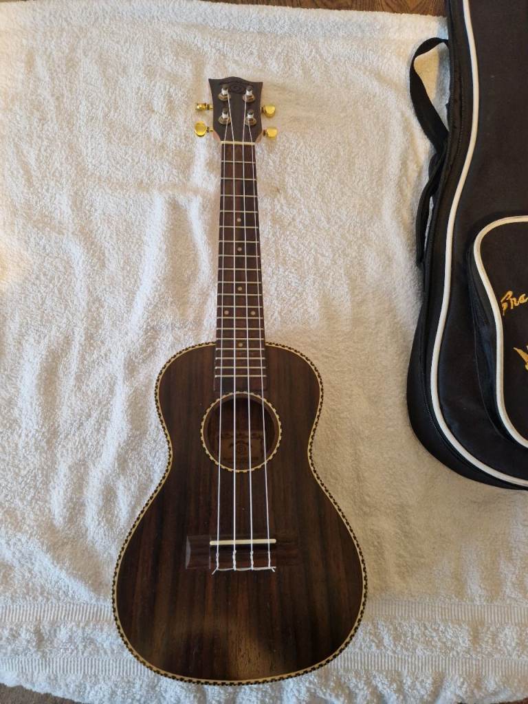 Baritone uke. Electro accoustic with built in tuner. Dgbe tuning. Very good condition. Warm tones.
