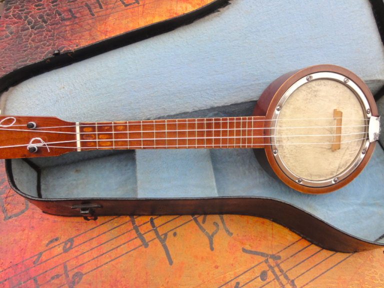 Ukulele Banjo & Hard Case - Vintage Banjolele - New Aquila strings - Sold by restorer