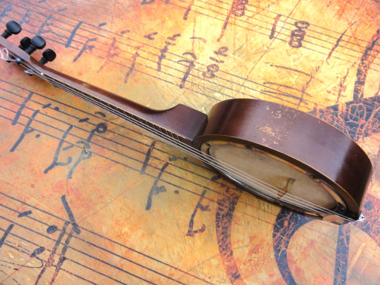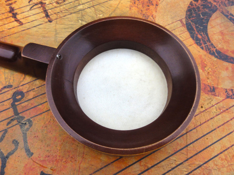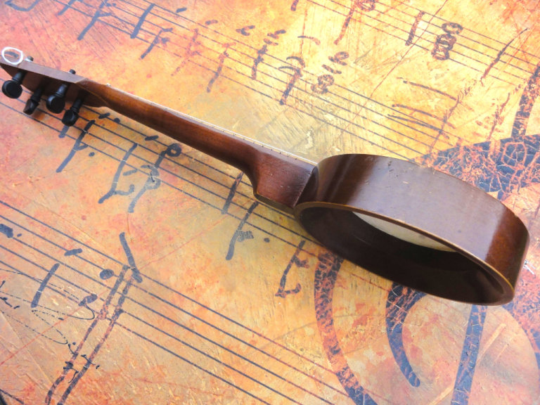 A bit of tarnishing on the chrome is to be expected with an instrument of this age, but it's minimal, and the skin / head is in great condition with only very fair marks. I've added a new set of Aquila strings, and deliberately left them long, so if you are a proper ukulele guy, and want to do any adjustments to the head tension, or fit them in your own way, you can restring with ease.
