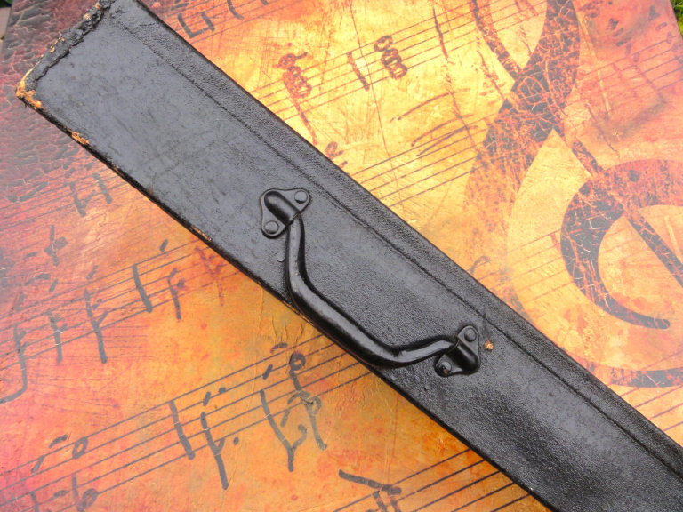 She comes with her original hard case, which is really nice, and very good indeed structurally. I've left any scuffs etc alone, as the case is also part of the history, and very collectable in it's own right so didn't need any restoration. The latches and handle are great, and there's a small compartment inside.