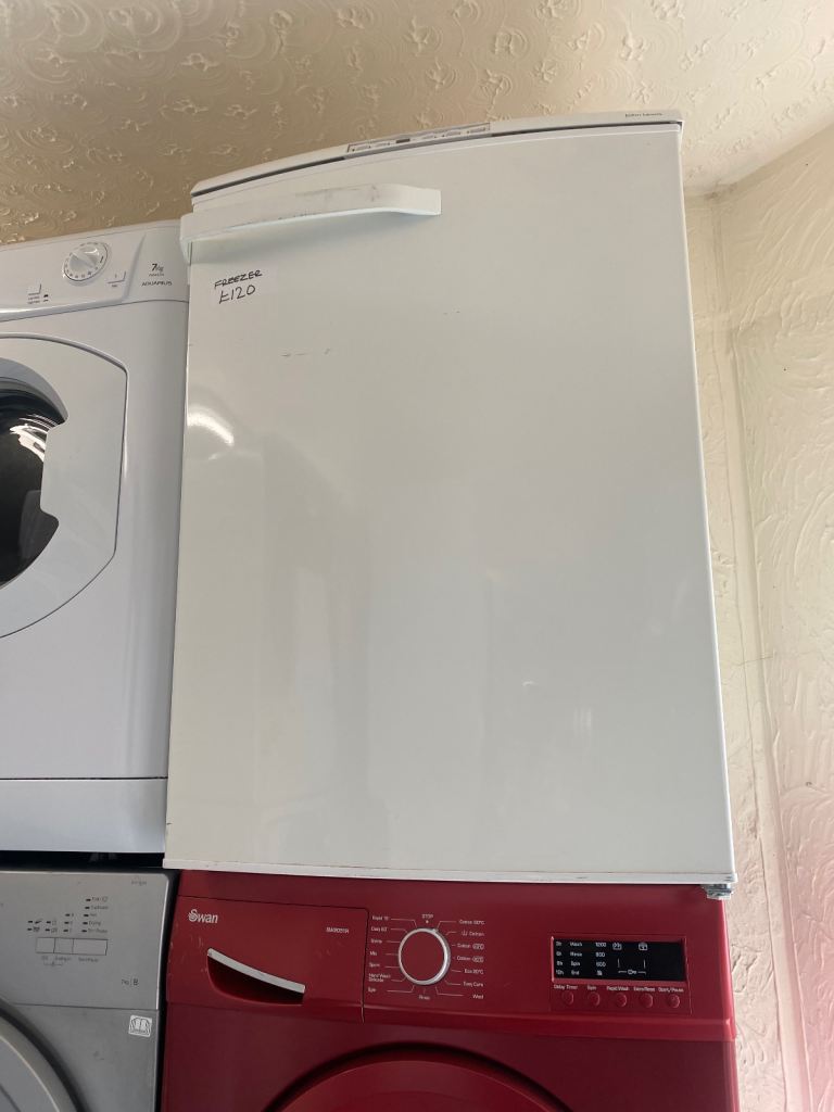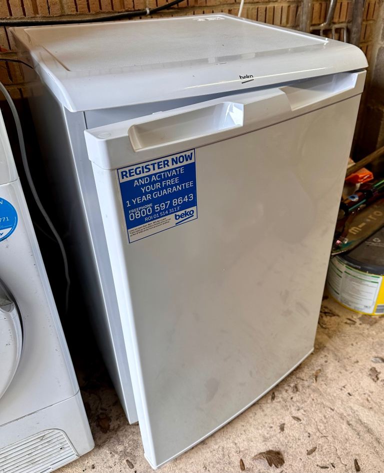 Used Freezer - Gently used for 4 years, modern black finish and freestanding design fit seamlessly into any space, enhancing your home bar or entertainment area.