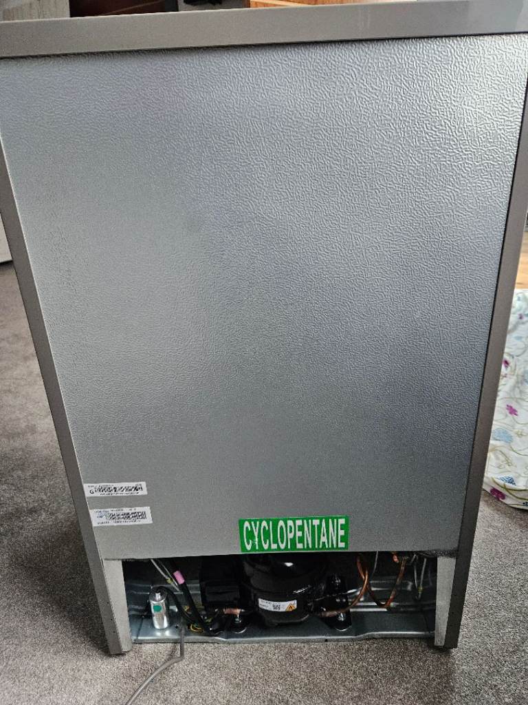 Under counter freezer stainless steel finish- 9 months old excellent condition 84.5cm h x 55cm w x 58cm d £ 199 new
