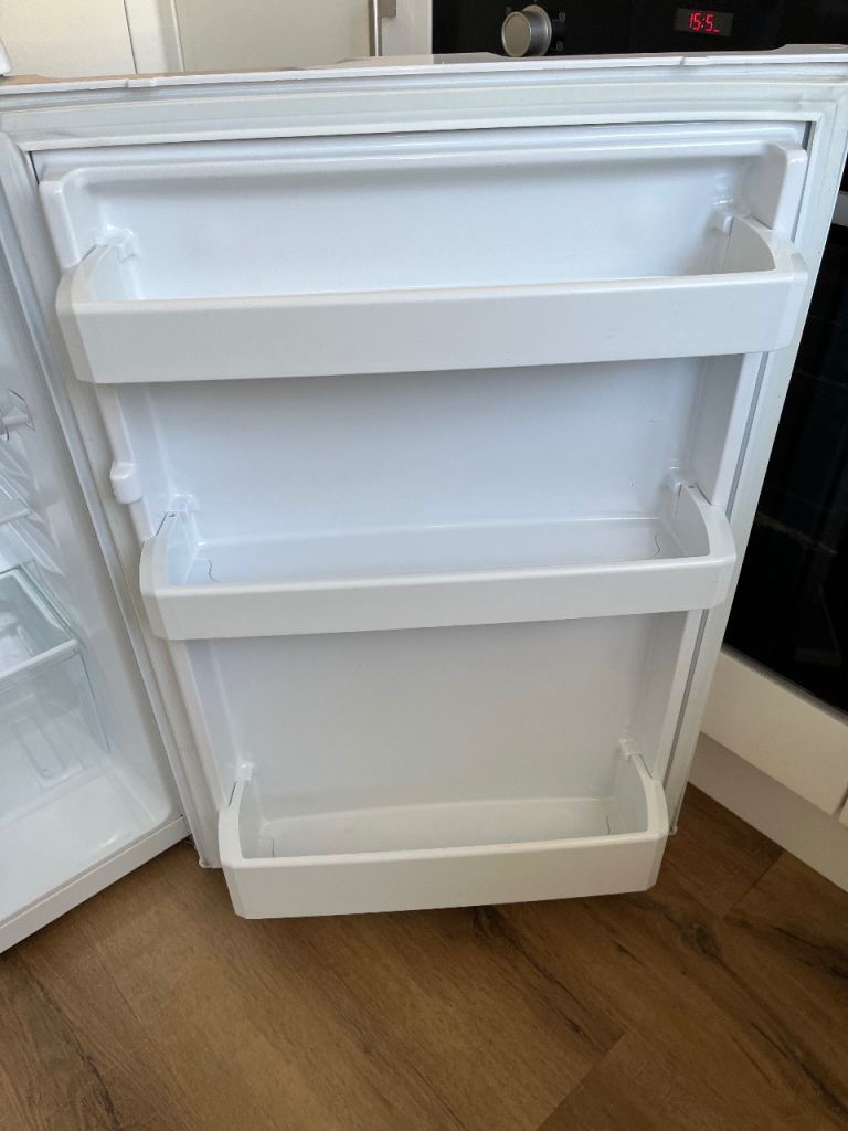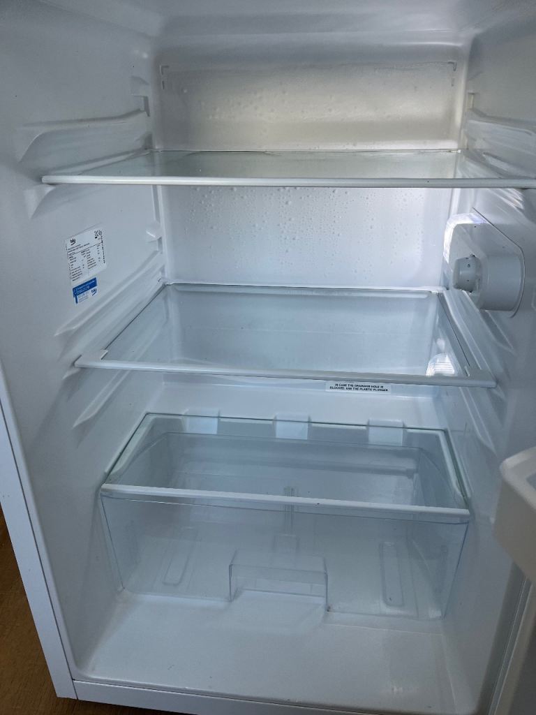 beko under counter fridge, height 84cms, width 54.5 cms, depth 55 cms. there is a small scuff on the the side of fridge. good working order. collection only.