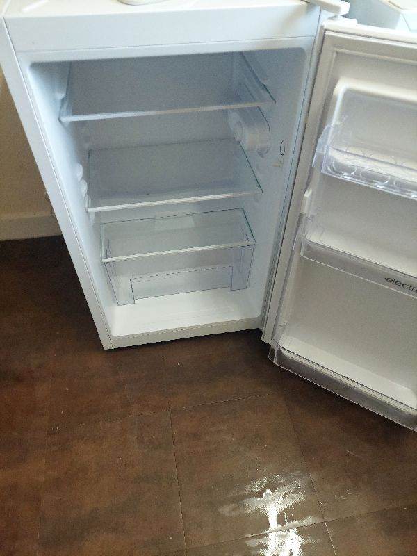 Fridge measuring 83cm high x 48cm wide x 45cm deep. In good condition.