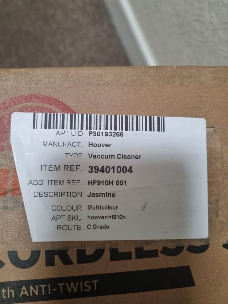 Selling a brand new, Hoover HF910H (Item Ref: 39401004) cordless stick vacuum cleaner. The model is part of the HF9 series (“Jasmine” in the listing) by Hoover.