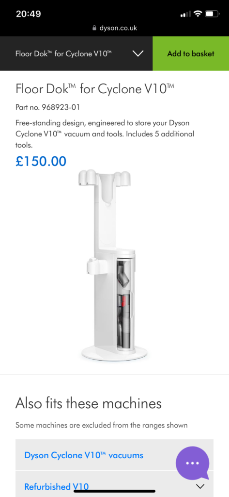 Brand new still in the box, so perfect for a Christmas present. Free-standing design, engineered to store your Dyson Cyclone V10™ vacuum and tools. Includes 5 additional Tools. Bought but never used or opened properly. Bought for £170, so an absolute Bargin!!