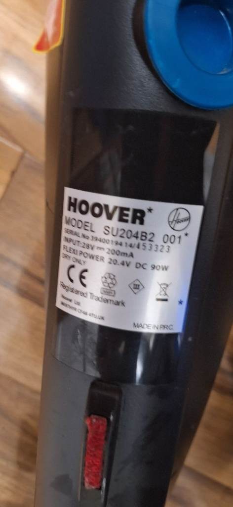 This is Hoover SU204B2 vacuum cleaner for spares or repair, it's a cordless ,Bagless, foldable, still working, but has week suction ,and small plastic peice is missing near the brush, check the sacend photo please,but doesn't effect still working, but I sale it as parts