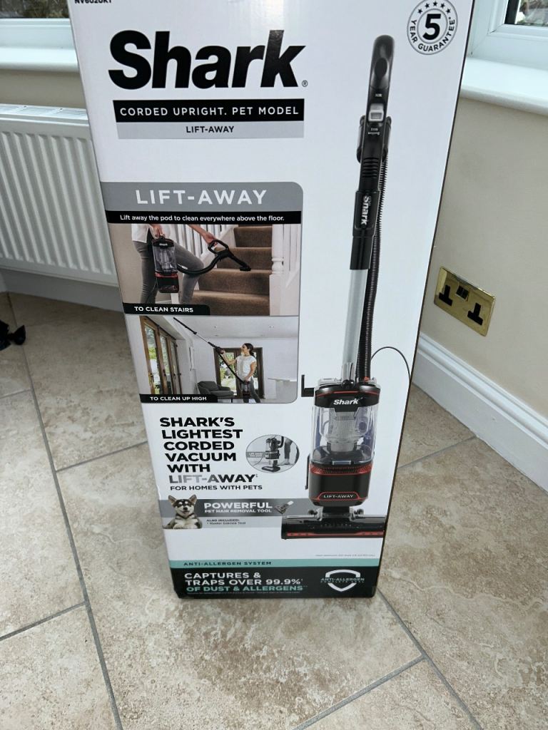 This hoover is brand new in a sealed box. The hoover is lightweight and has two floor settings. It has a lift away pod to enable easy hoovering of stairs etc. Very powerful suction. RRP £229.