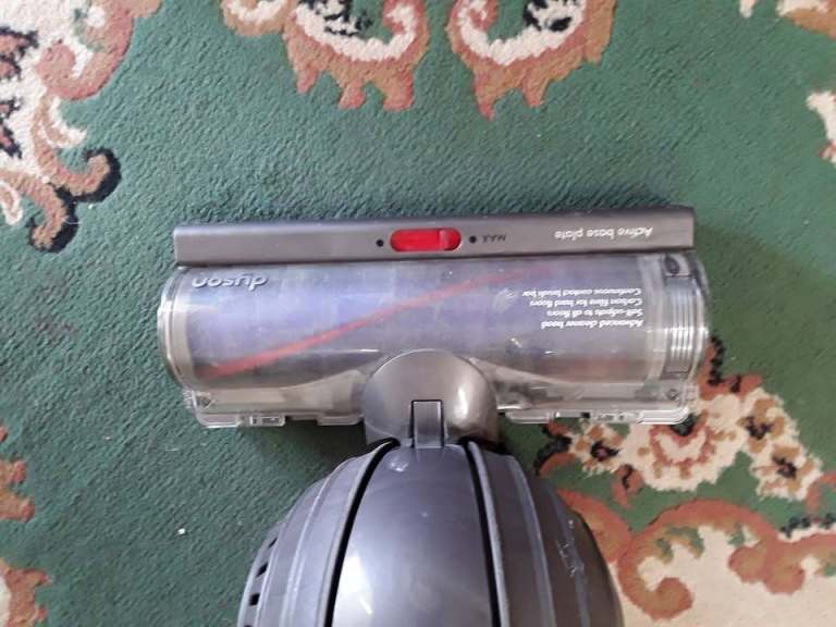 This slim Dyson DC50 rollerball vacuum cleaner is in full working order. There are a couple of pieces of Gorilla tape holding the actual front section where the brush can be seen in place, as it had a tendency to keep popping off, but the tape now holds it firmly together... The suction is very good too.