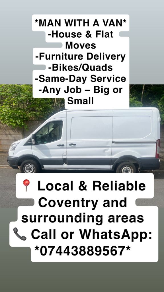 Please call me for any REMOVAL/OFFICE/FLAT HOUSE REMOVALS/STORE PICK UPS/STUDENT ACCOMADATION MOVES/FURNITURE/GARDEN PRODUCTS AND MANY MANY MORE. IF IT FITS..... WE WILL MOVE IT 👌 TEAM OF 2 MEN. WORKING 24/7. STARTING PRICE OF £20
