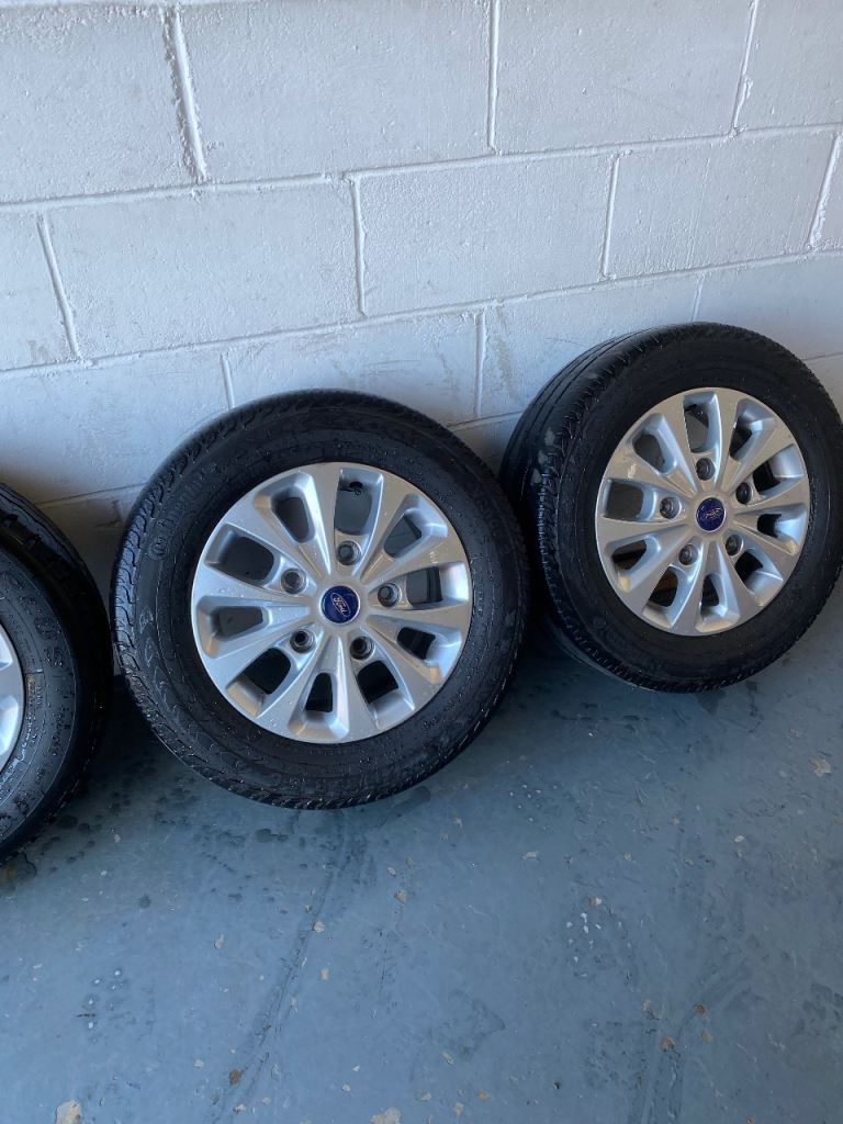 A set of 4 alloy wheels for a Ford Transit Custom in good condition no scuffs with good tread on tyres also complete with original wheel nuts with locking key.