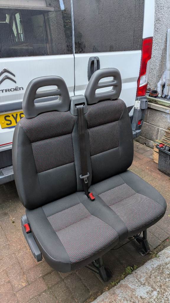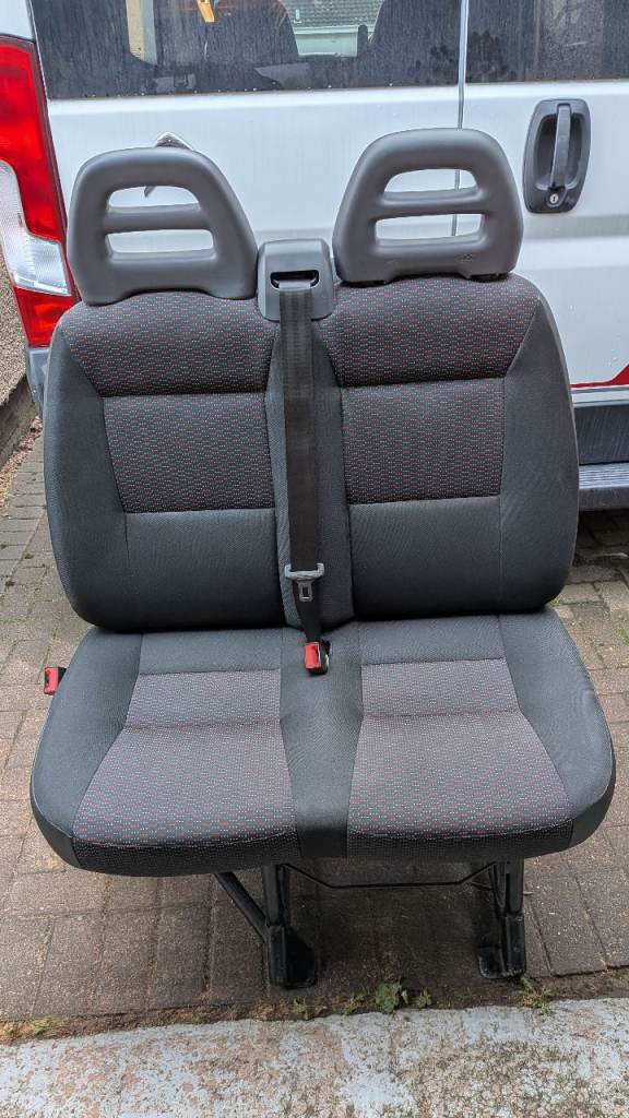 Double Van Seat with seatbelts in very good condition no rips or wear damage. From low milage van conversion. Fits Citroen Relay, Peugeot Boxer and Fiat Ducato
