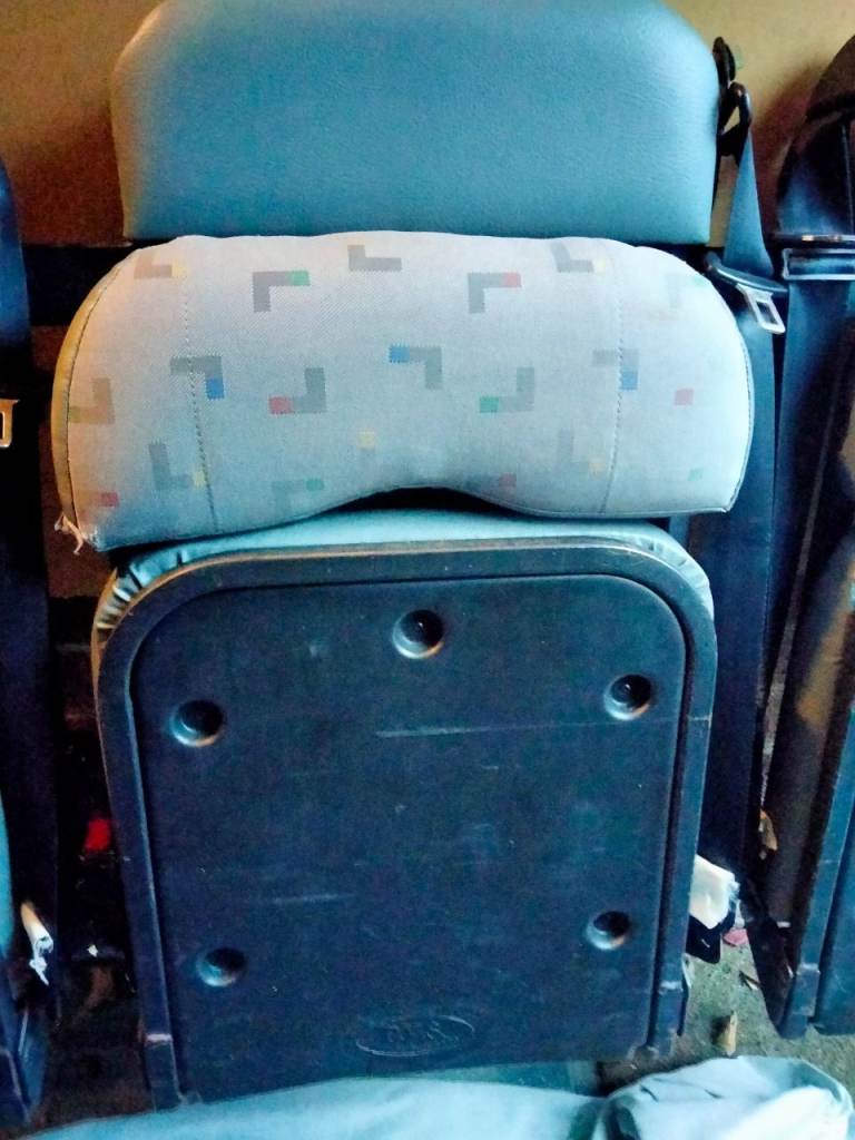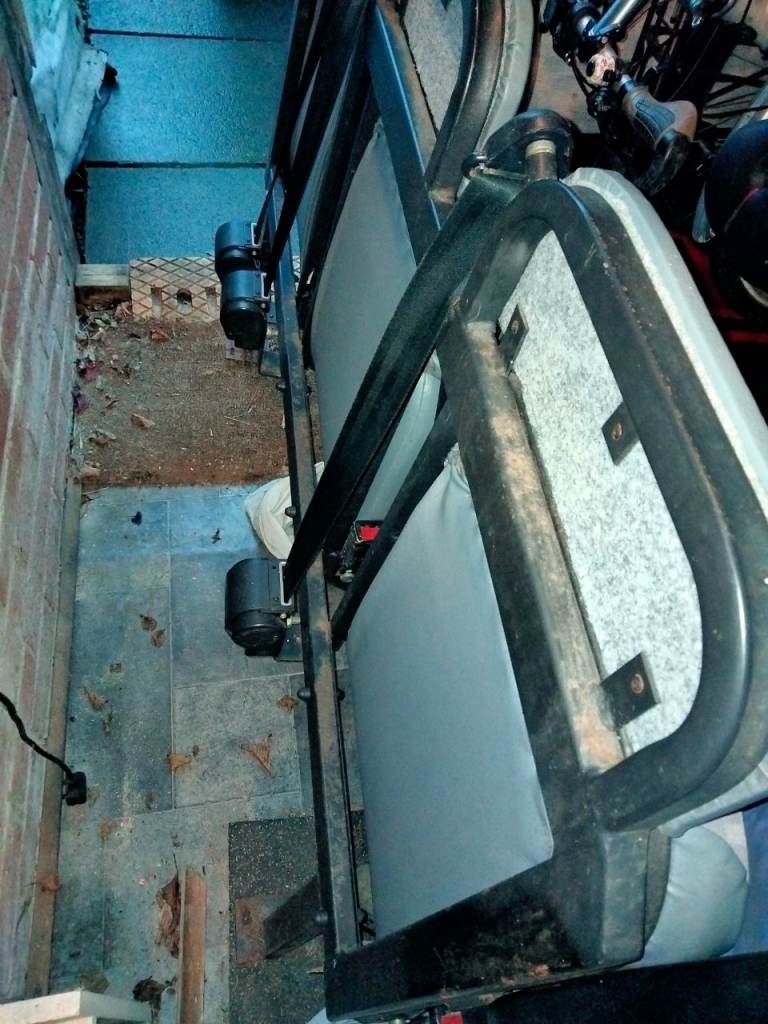 Removed from my Volkswagen Transporter T5. Although may fit other vans with adaption. Bolts through floor and brackets onto B pillar to secure. Fixing bolts not included. Made locally by Premier Vehicle Solutions (Quinn Coaches) who are Volkswagen approved, so a quality piece of engineering. Finished in a Volkswagen Aztec fabric